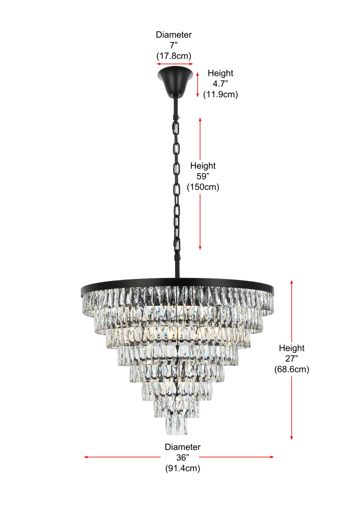 Designed with flexibility in mind, it offers a minimum hanging height of 36 inches and a maximum of 96 inches using the included 59-inch chain.