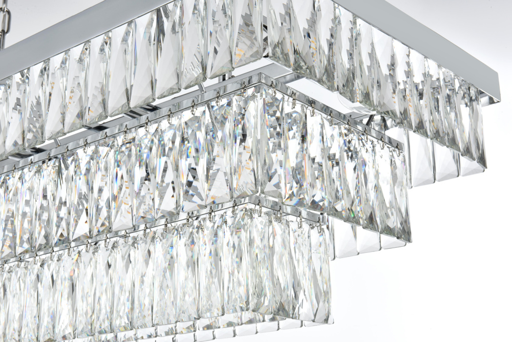 Three distinct crystal tiers form a stunning stepped silhouette beneath the linear frame.