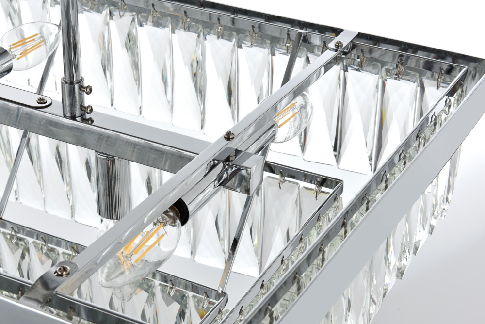 Transform your space with this spectacular linear pendant that reinvents crystal lighting for contemporary interiors. The bold rectangular frame suspends two perfectly proportioned crystal tiers, creating a mesmerizing interplay of light and structure. Each precisely cut crystal is strategically positioned to maximize light play, producing brilliant refractions that dance across your space. The strong horizontal presence makes this fixture an ideal centerpiece above dining tables, conference rooms, or in grand living spaces. The thoughtful construction marries industrial strength with crystalline delicacy, as the robust metal frame appears to float above while supporting the spectacular crystal arrangement. Whether styled in reflective chrome, sophisticated black, or warm satin gold, this pendant commands attention through its architectural presence. The linear composition offers a fresh interpretation of crystal lighting, where clean lines and geometric precision meet the spectacular light performance of premium crystal. This fixture doesn't merely illuminate – it defines space through its commanding horizontal presence while creating an ever-changing display of light and shado