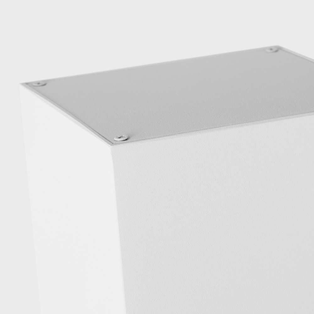 Crafted with the proprietary StoneStrong material in a Outdoor Textured White finish with tempered glass diffuser and outdoor textured white stainless steel panel
