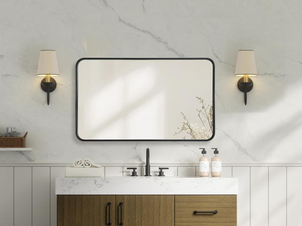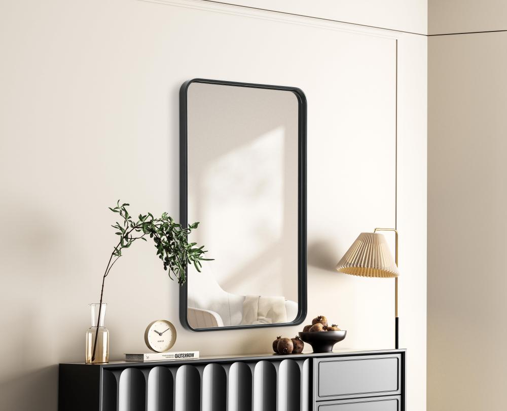 Elevate your home decor with this versatile wall mirror that combines functionality and modern design. Made from a sturdy combination of MDF, iron, and reflective mirror glass, this piece is built to last while adding a polished finish to any room. The extended depth of the frame not only provides a striking dimensional effect but also ensures the mirror’s presence commands attention as a focal point. Whether you're decorating a bedroom, bathroom, or entryway, its diverse shapes—including rectangle and square—offer plenty of options to suit your style. The hand-painted black, brass, or silver finish brings a subtle yet striking touch, complemented by rounded corners for a smooth and contemporary aesthetic. with four metal inset hangers, it's ready to hang vertically or horizontally, ensuring flexibility for any layout. Available in multiple sizes, this mirror is a statement piece that blends seamlessly into both modern and classic spaces.