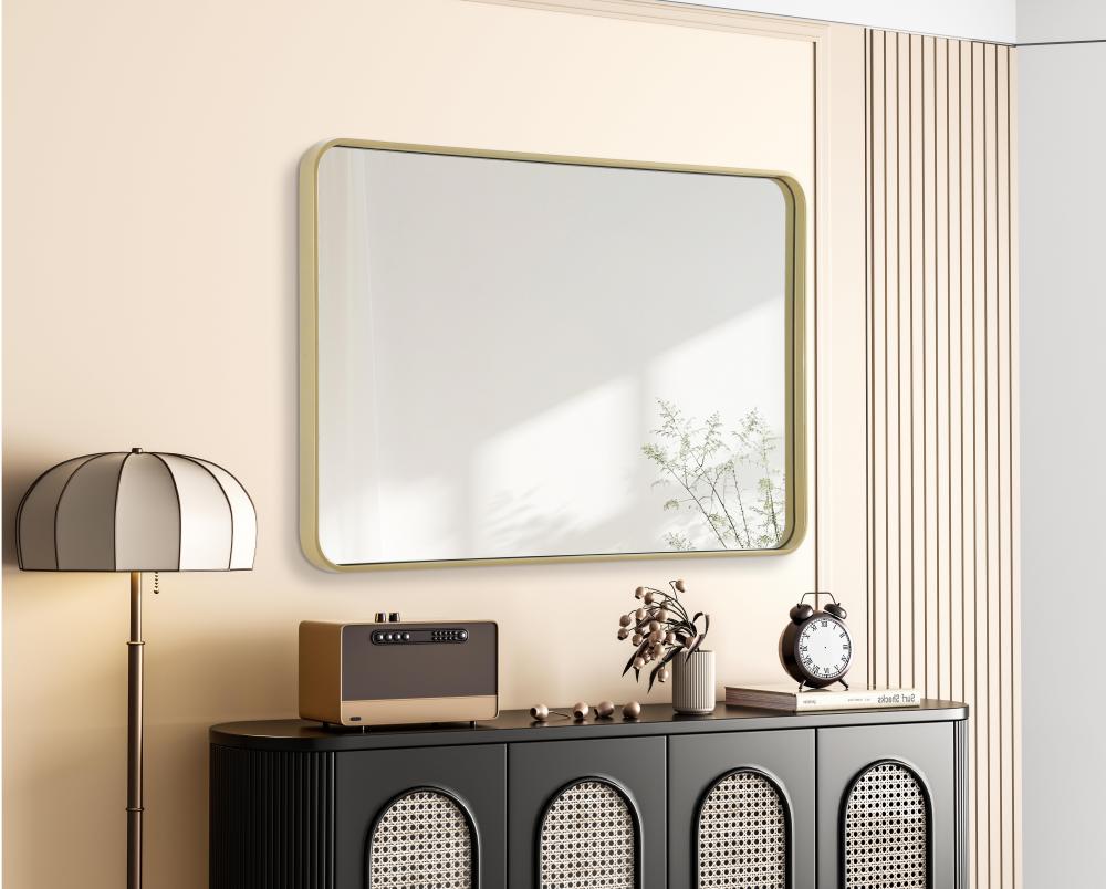 Elevate your home decor with this versatile wall mirror that combines functionality and modern design. Made from a sturdy combination of MDF, iron, and reflective mirror glass, this piece is built to last while adding a polished finish to any room. The extended depth of the frame not only provides a striking dimensional effect but also ensures the mirror’s presence commands attention as a focal point. Whether you're decorating a bedroom, bathroom, or entryway, its diverse shapes—including rectangle and square—offer plenty of options to suit your style. The hand-painted black, brass, or silver finish brings a subtle yet striking touch, complemented by rounded corners for a smooth and contemporary aesthetic. with four metal inset hangers, it's ready to hang vertically or horizontally, ensuring flexibility for any layout. Available in multiple sizes, this mirror is a statement piece that blends seamlessly into both modern and classic spaces.