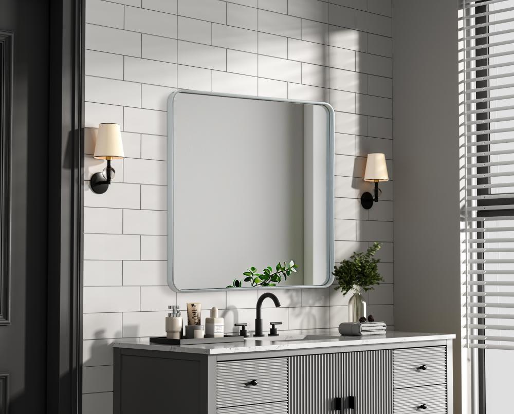 Elegant MR8A3030BLK - R Corner Square Mirror 30"x30"x2" black