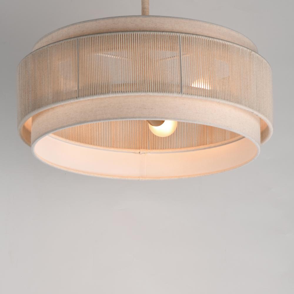 The Seacliff collection blends coastal charm with transitional elegance. Its centerpiece features twisted cotton strands, filtering light beautifully while adding texture and visual interest. Above and below the band of cotton twine, an Off-White linen sha