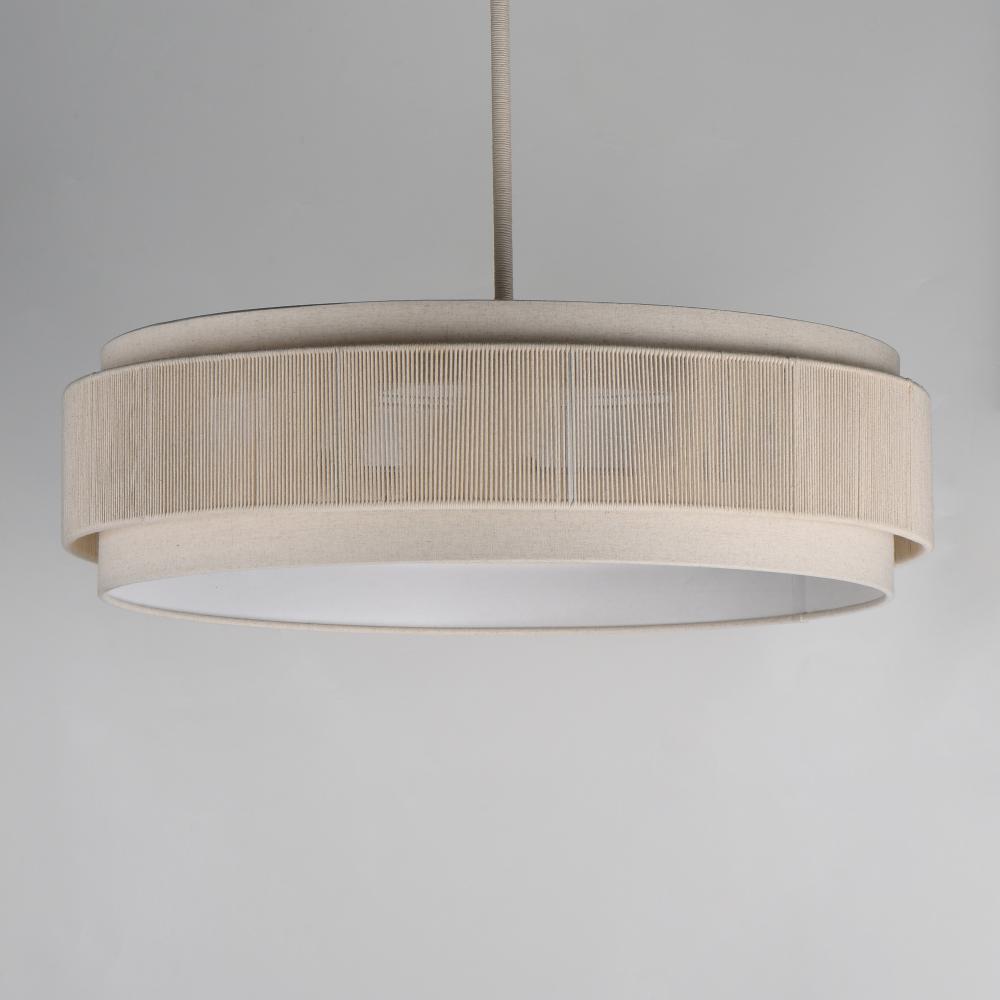 The Seacliff collection blends coastal charm with transitional elegance. Its centerpiece features twisted cotton strands, filtering light beautifully while adding texture and visual interest. Above and below the band of cotton twine, an Off-White linen sha