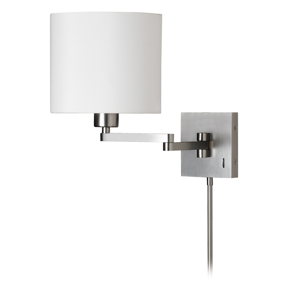 A classic look gets a conveniently modern makeover in the Arm Swing Lamp collection. It's a versatile design with a classic profile, and adjustable placement you can customize. The metal frame comes in a subtle satin chrome finish, contrasting a white fabric shade in your choice of drum or tapered drum shape. It's the perfect way to add spot lighting in areas where floor space is at a premium. With its nod to traditional forms, its sleek modern silhouette adds an element of luxury and style to living rooms, hallways or office suites.
