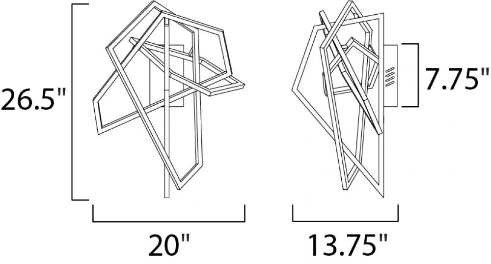Is it lighting or is it Art? The answer is both. Channels of Polished Chrome are skillfully mitered and assembled to create the ultimate conversation piece. LED strips are installed inside the channels to illuminate the room without annoying glare.