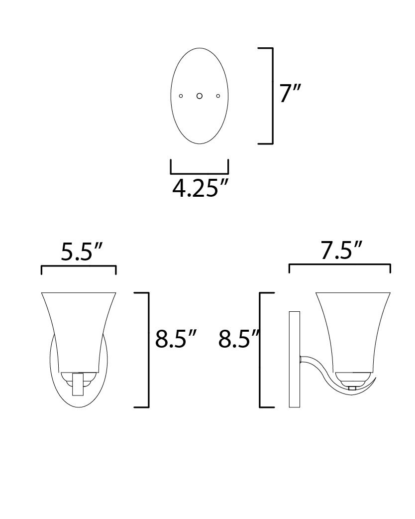 Gently waving arms of Satin Nickel or Oil Rubbed Bronze support tall-profile Frosted glass shades creating a scale normally not found in this category of lighting. The bath vanity may be installed up or down and also includes a Polished Chrome finish.