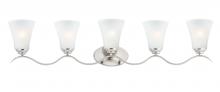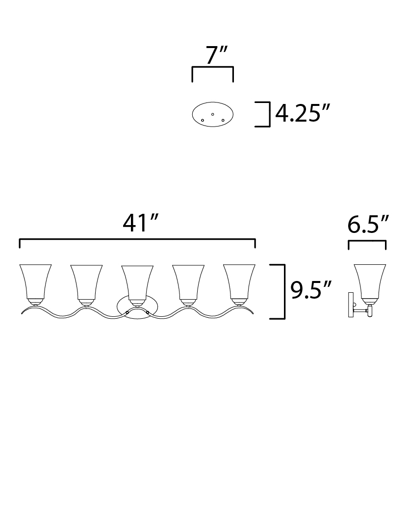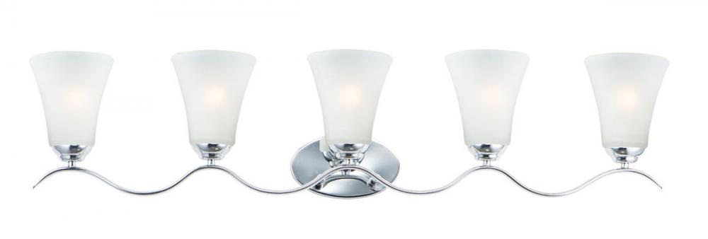 Gently waving arms of Satin Nickel or Oil Rubbed Bronze support tall-profile Frosted glass shades creating a scale normally not found in this category of lighting. The bath vanity may be installed up or down and also includes a Polished Chrome finish.