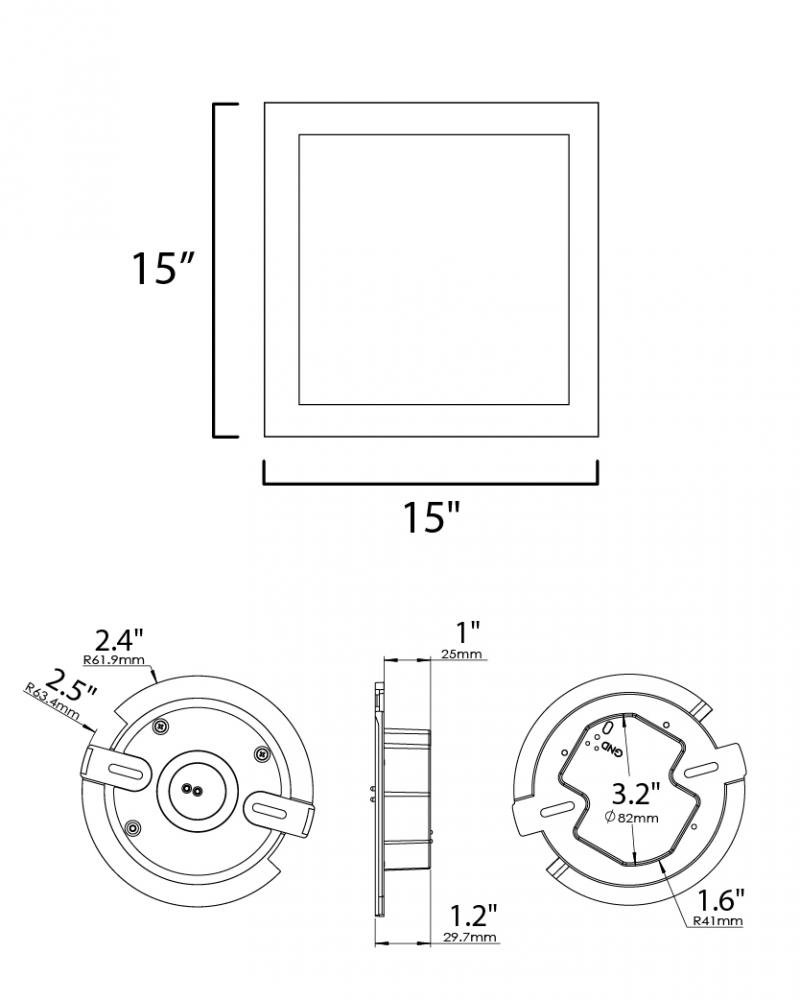 Wafer 15" SQ LED Surface Mount 3000K
