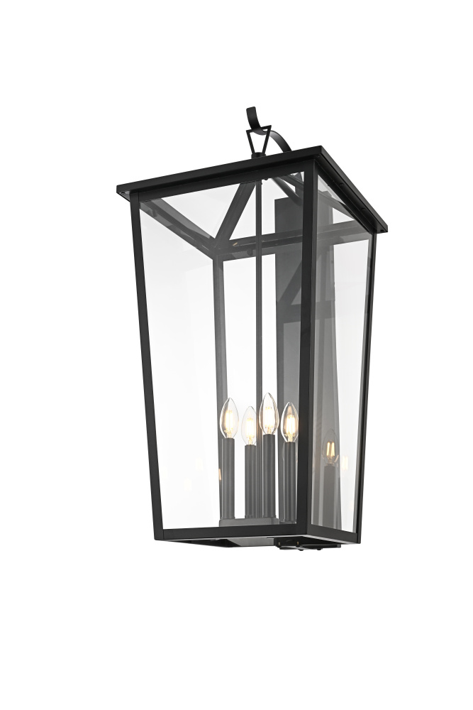 The sconce features crystal-clear glass panels, offering unobstructed illumination that warmly lights up entryways, walkways, or patios. The transparency of the glass allows the bulbs to shine brightly, creating a welcoming environment.