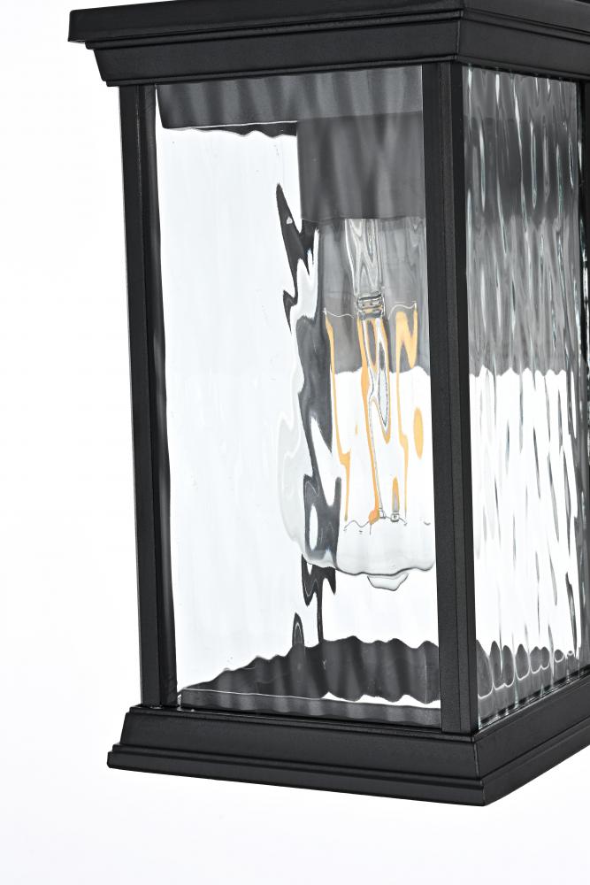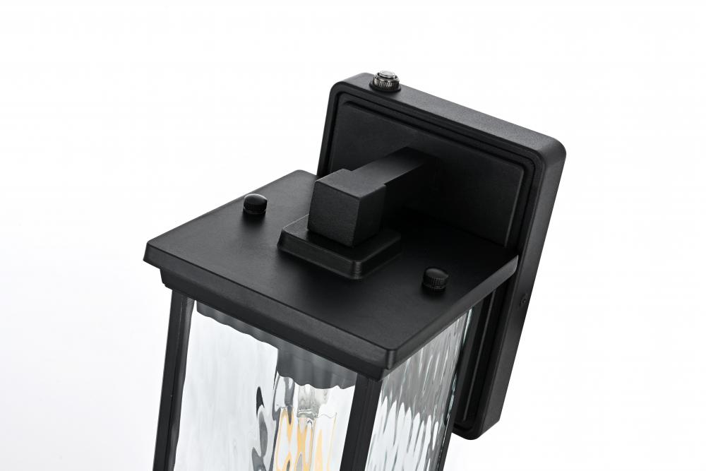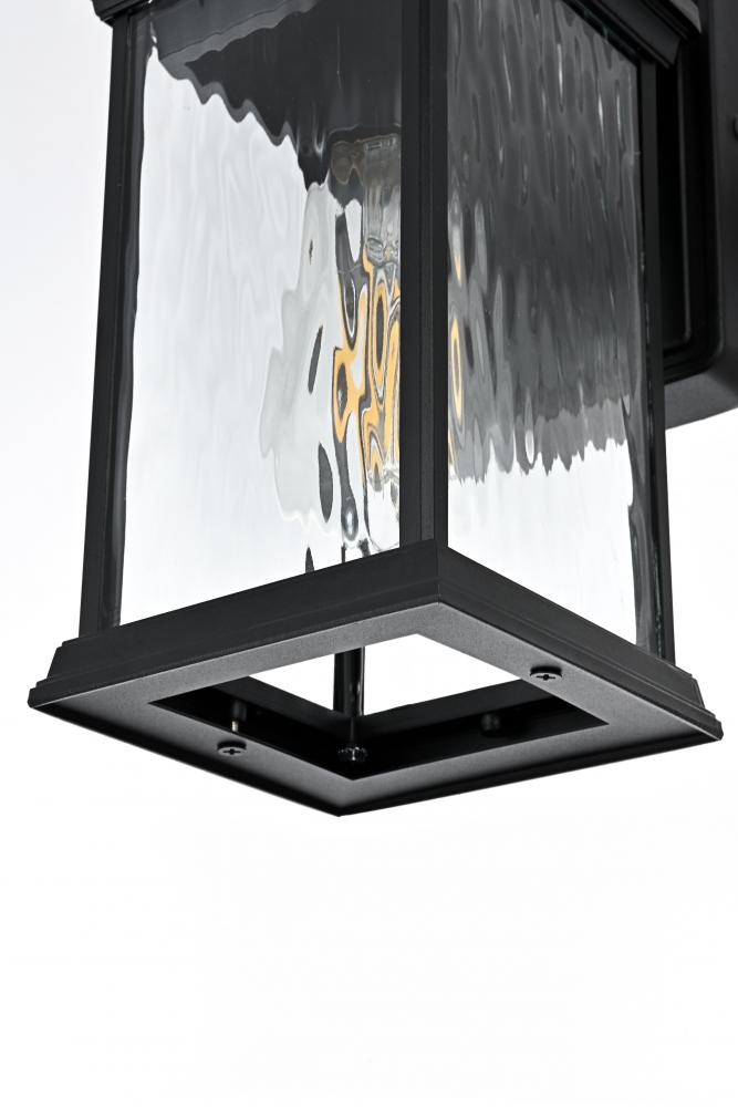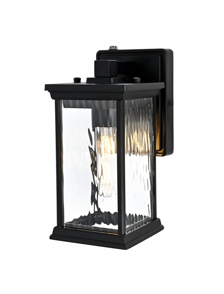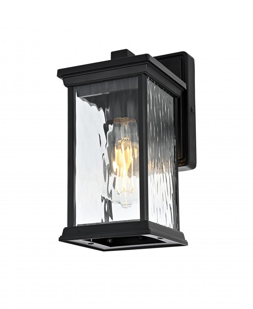 Featuring rippled water glass panels, this wall sconce not only provides functional illumination but also enhances the look with interesting light reflections and patterns, adding a layer of depth to your outdoor spaces.
