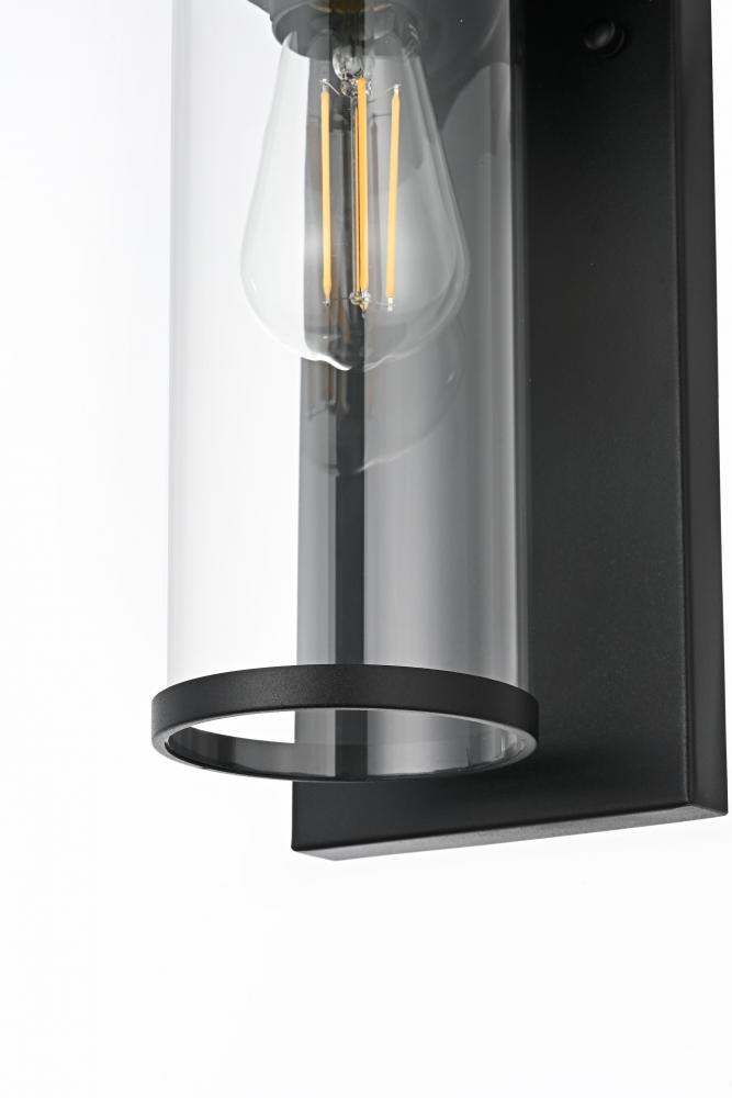 The fixture features a clear cylindrical glass shade that provides ample illumination, adding a welcoming atmosphere to your exterior spaces.