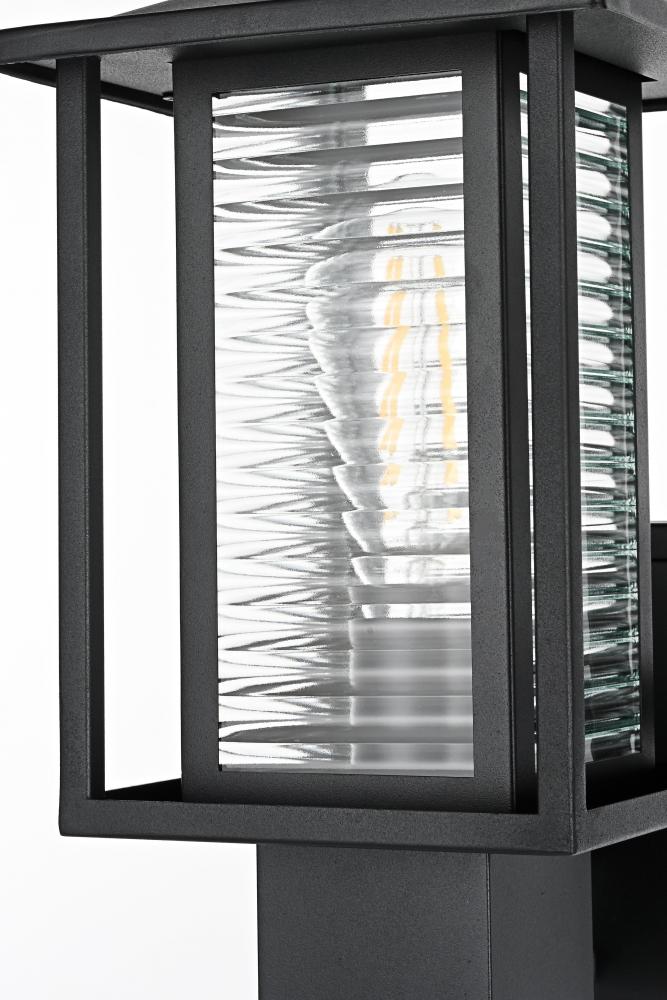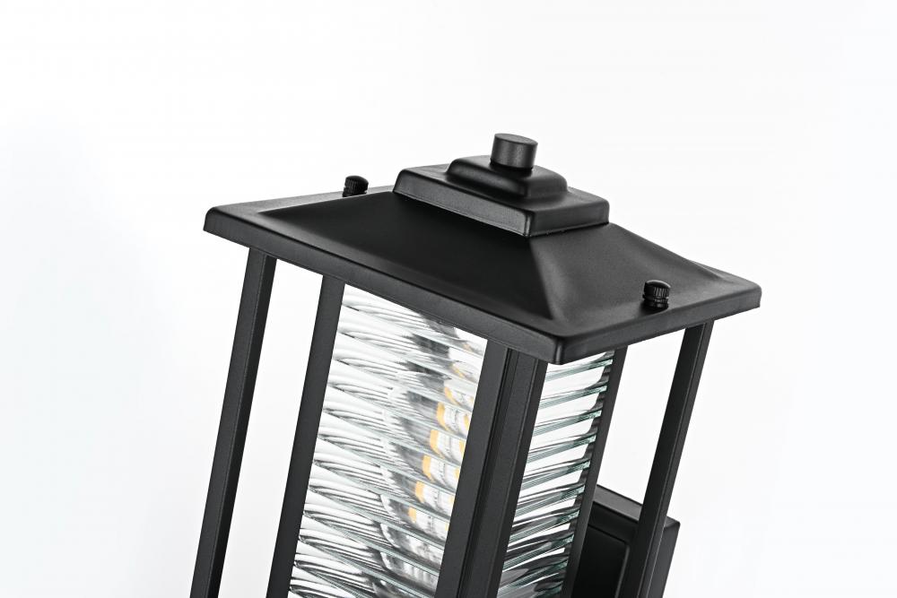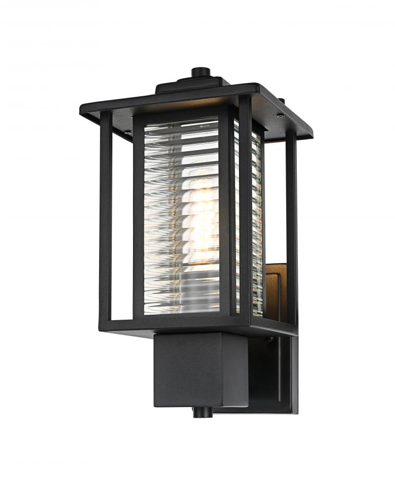 The mix of classic ribbed glass and sleek matte black iron gives this sconce a versatile style that complements both traditional and contemporary outdoor decor.