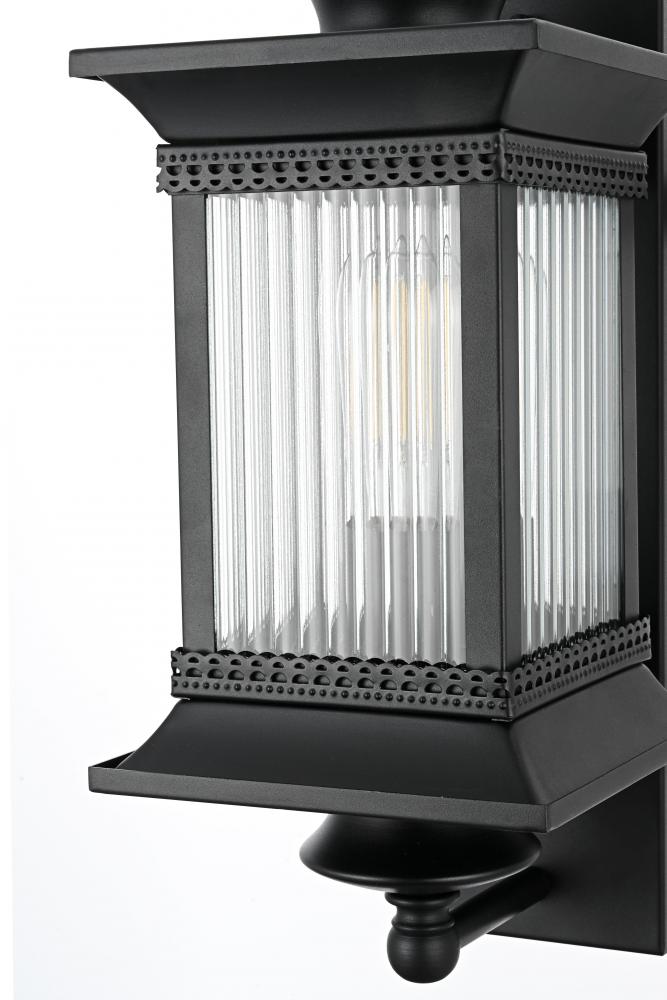 Constructed from durable iron, this wall sconce is made to withstand the elements, providing lasting reliability for outdoor use.