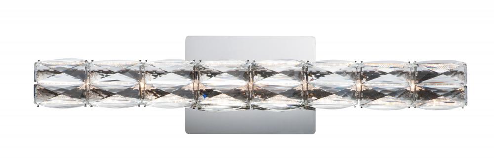 Rectangular Beveled Crystals are banded together to form soft square cylinders which are illuminated by LED that creates a brilliant lighting effect. Some items include metal chassis of Black which frame the crystal for a beautiful silhouette.